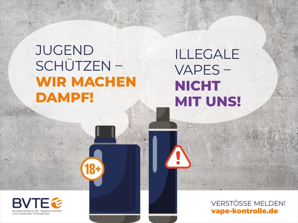 Als Hersteller sowie als Gründungsmitglied des Bundesverbands der Tabakwirtschaft und neuartiger Erzeugnisse (BVTE) unterstützen wir ausdrücklich die Initiative unseres Dachverbands zur Einrichtung eines bundesweiten Meldeportals für Verstöße gegen den Jugend- bzw. Verbraucherschutz in Bezug auf E-Zigaretten. Seit Mitte 2025 können Bürgerinnen und Bürger auf www.vape-kontrolle.de ganz einfach Hinweise dazu geben, wenn Händler Produkte ohne Jugendfreigabe an Minderjährige verkaufen oder nicht verkehrsfähige Waren anbieten. Jeder Hinweis, der über das Online-Meldeportal eingeht, wird automatisch an die für die betreffende Verkaufsstelle direkt zuständige Ordnungsbehörde weitergeleitet.